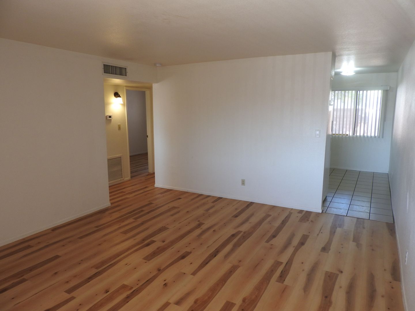 This centrally located apartment offers two spacious bedrooms and a full bathroom, perfect for those seeking a comfortable and convenient living space. The large living room provides ample space for relaxation and entertainment. The kitchen is equipped with a refrigerator and a gas stove. Step outside to a large, fenced yard complete with a covered patio. With its prime location just off of Airway, this apartment offers easy access to all that Kingman has to offer.