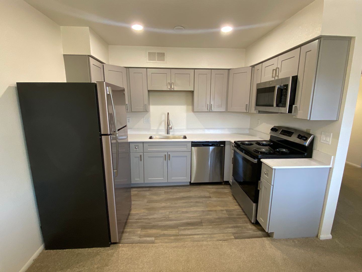 Step into this beautifully remodeled one-bedroom apartment at Shadowbrook Apartments, thoughtfully designed for comfort and style. This inviting home features a bright living area with recessed lighting and a modern kitchen showcasing gray shaker cabinetry, granite countertops, and stainless steel appliances, along with a dedicated dining space. Luxury vinyl plank flooring, walk-in closets, air conditioning, ceiling fans, and a full-size washer and dryer add everyday convenience. Enjoy your own private Balcony—perfect for relaxing, entertaining, or taking in Sedona’s beautiful surroundings.