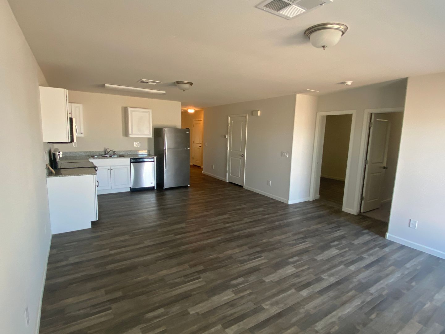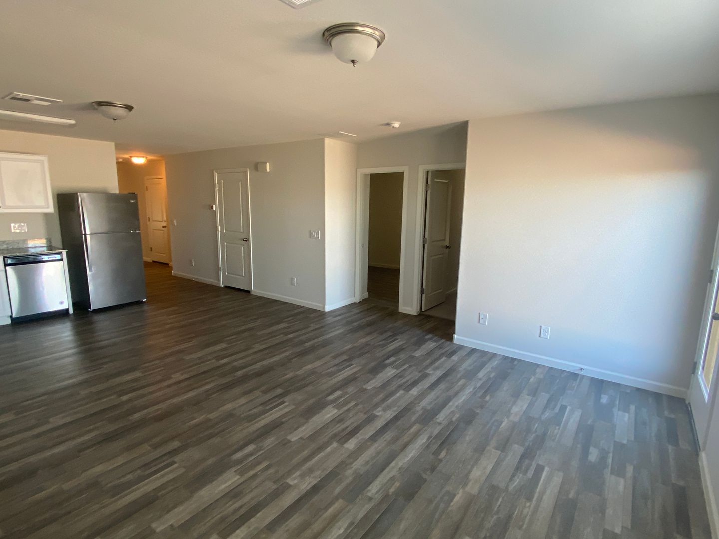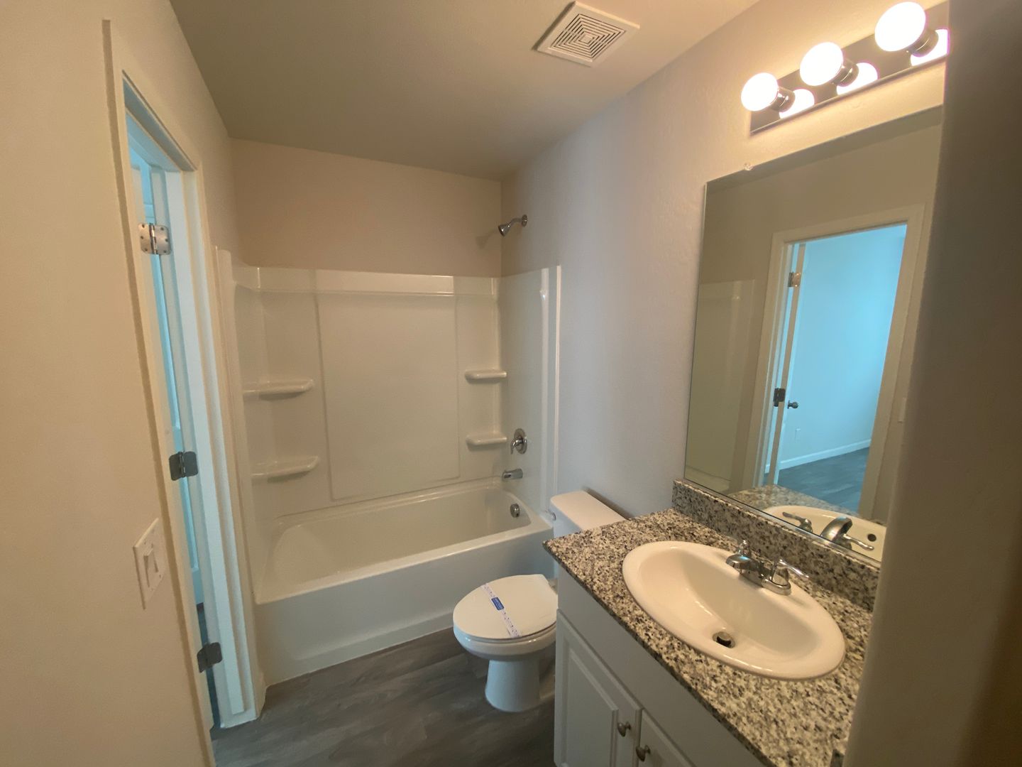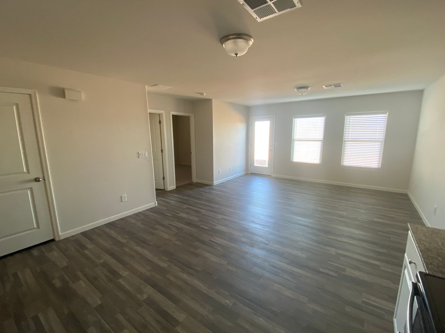 Spacious greatroom is next to kitchen. Updated finishes with vinyl wood flooring throughout except for carpet in bedrooms. Kitchen has granite countertops and stainless appliances plus plenty of cabinet and counter space. Washer and dryer included plus 1 car garage. Home is in excellent condition. Tenant is responsible for maintaining all landscaping including regular weed removal.