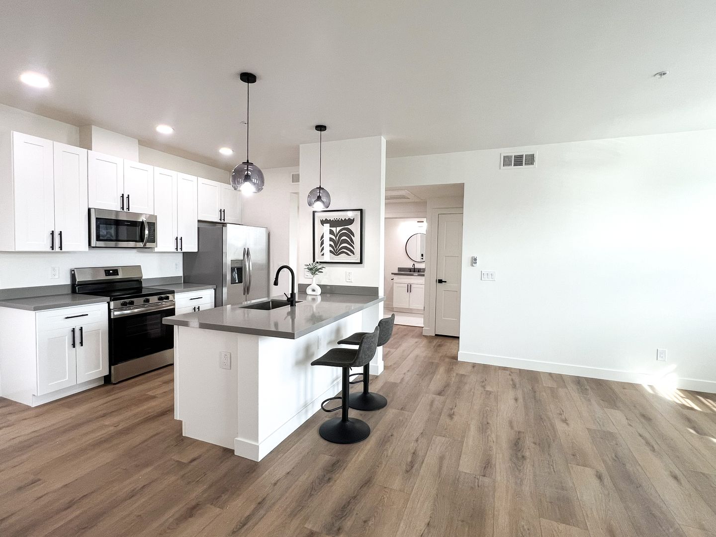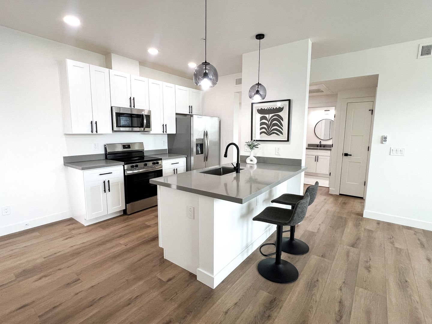 MOVE IN SPECIAL OF HALF OFF FIRST FULL MONTH'S RENT FOR A 13 MONTH LEASE. Welcome to your new home in Phoenix AZ This newly renovated one-bedroom, one-bathroom loft-style apartment offers a blend of comfort and style. The modern finishes, including luxury vinyl plank flooring and white sand quartz countertops, create a sleek and sophisticated living space. The kitchen is equipped with new stainless appliances, perfect for those who love to cook. The apartment also features ceiling fans throughout, ensuring a comfortable environment all year round. There is a washer and dryer for your convenience. For those with furry friends, you'll be pleased to know that pets are welcome here. The secluded complex also boasts a picnic area, perfect for enjoying the beautiful Arizona weather. With off-street parking available, you'll never have to worry about finding a parking spot. The location is unbeatable, being close to both the freeway and downtown Phoenix, making commuting a breeze. Experience the best of Phoenix living in this stylish residence.