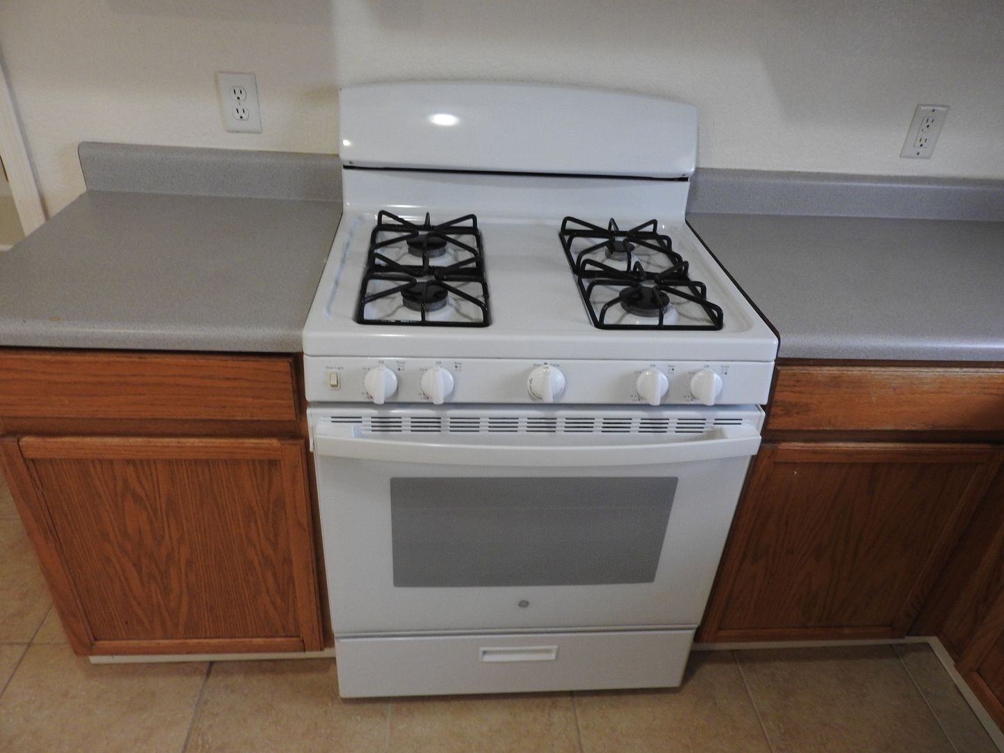Three bedrooms, two bath, two car garage with fenced yard. This home has fresh paint and new carpet along with a gas stove. NO PETS