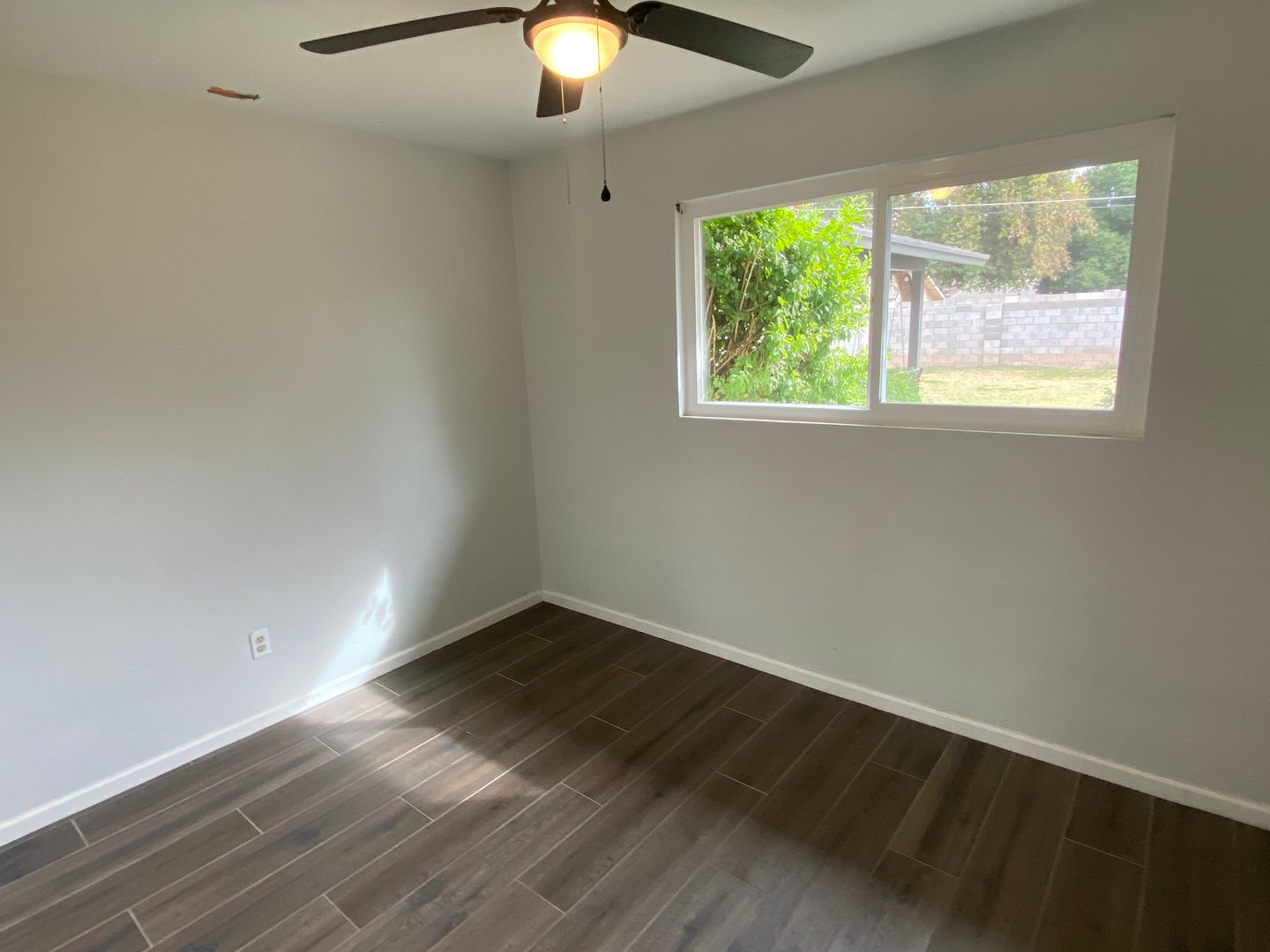 Welcome to this beautifully renovated home in Phoenix, AZ, where modern living meets comfort. This property boasts three generously-sized bedrooms and two fully remodeled bathrooms, offering ample space for your needs. The spacious living room with fireplace, diningroom and kitchen area have new flooring and fresh paint, providing a welcoming atmosphere for entertaining or relaxing. The livingroom has double french doors leading out to large patio and backyard. The spacious kitchen is a chef's dream with stainless appliances and granite countertops, offering both style and functionality. The roomy laundry room has full sized washer and dryer. The home also features new energy-efficient windows, ensuring comfort throughout the seasons. Outside, you'll find a large lush yard and a double patio, perfect for outdoor enjoyment. The property also includes a one-car garage and a huge storage room, providing plenty of space for your belongings. Experience the perfect blend of elegance and convenience in this Phoenix home. Pets welcome with $300 refundable pet deposit per pet (max 2 pets).